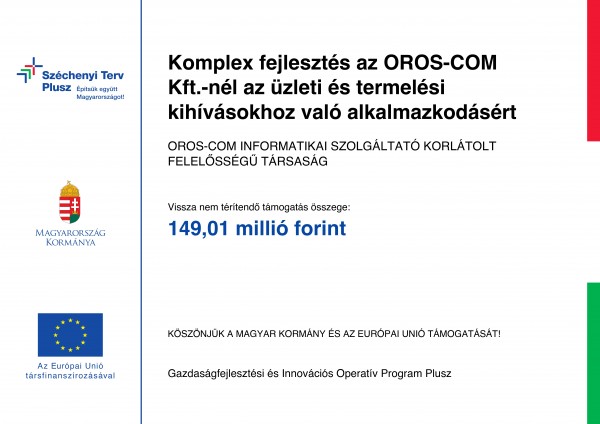 Az Oros-Com Kft. 149,01 millió forint feltételesen vissza nem térítendő európai uniós támogatást nyert a Gazdaságfejlesztési és Innovációs Operatív Program pályázati kiírásán. A támogatás segítségével a helyi vállalkozás Mezőkovácsházán a cég telephelyén valósít meg olyan komplex technológiafejlesztést illetve ipari csarnok épület építést, ami nagyban segíti az ügyfelek modern, a mai kor igényeinek megfelelő kiszolgálását.